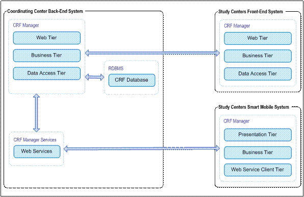 1. CRF template defining service is provided by the Co-ordinating Center's server and used for editing CRF templates that will be sent to the study centers in order for the lasts ones to collect CRF information.